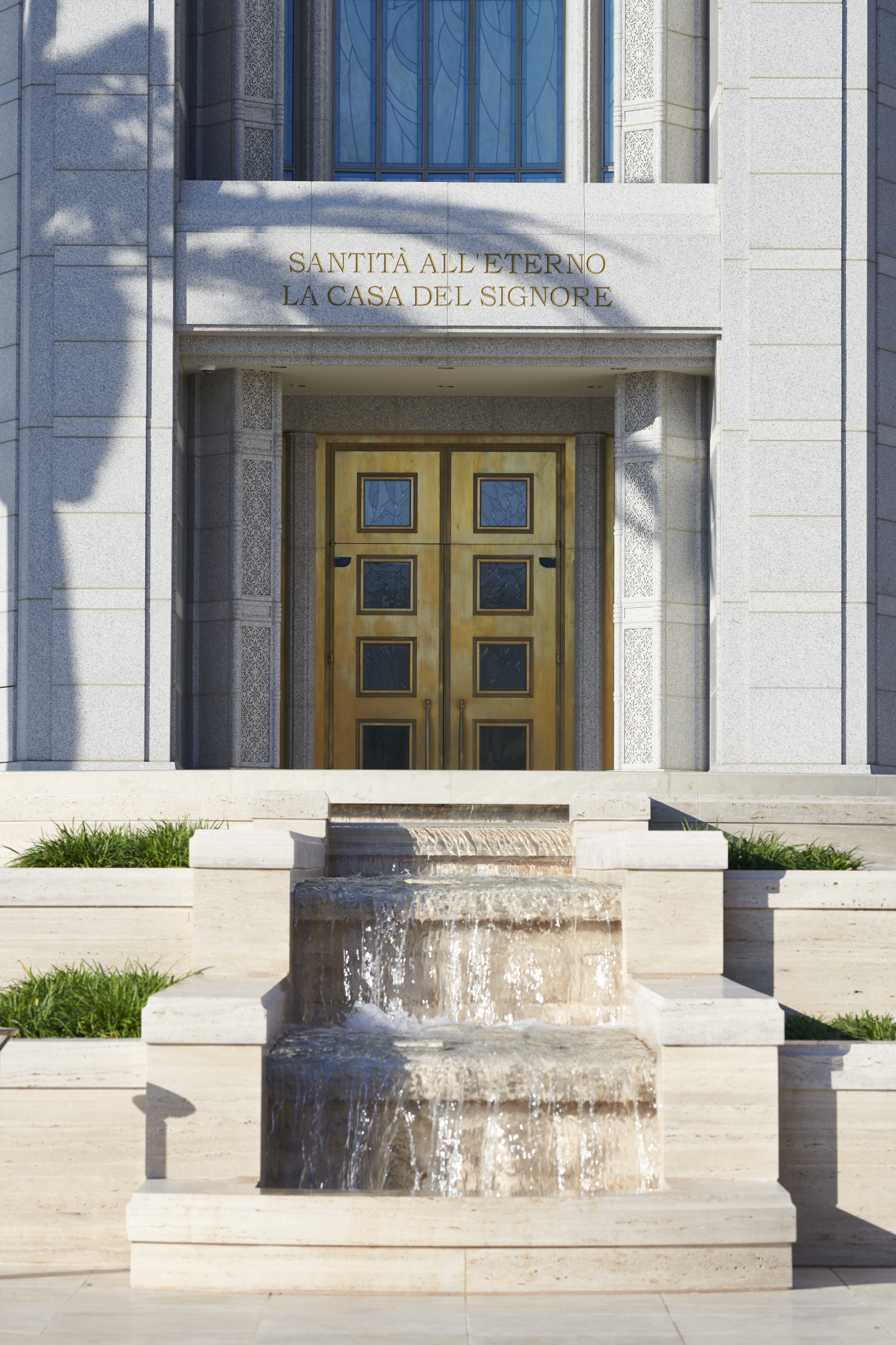I lavori per la costruzione di questo edificio sono iniziati il 23 Ottobre 2010. Con un’estensione di quasi 4000 metri quadrati, gli esterni del tempio sono in granito Bianco Sardo con vetrate decorative; mentre le finiture interne sono in marmo, legno e pitture. Le vetrate esterne sono decorate da un motivo floreale raffigurante gli ulivi del complesso del tempio. Queste, sono state ideate e create dall’Holdmand Studios and Glass Art Institute dello Utah (USA). Per i giardini, l’InSite Design Group dello Utah ha utilizzato piante autoctone quali esemplari di pino domestico e trentadue ulivi. Gli ulivi centenari sono stati recuperati dall’area di costruzione del tempio, con lo scopo di conservare e preservare ciò che la natura del luogo offriva.